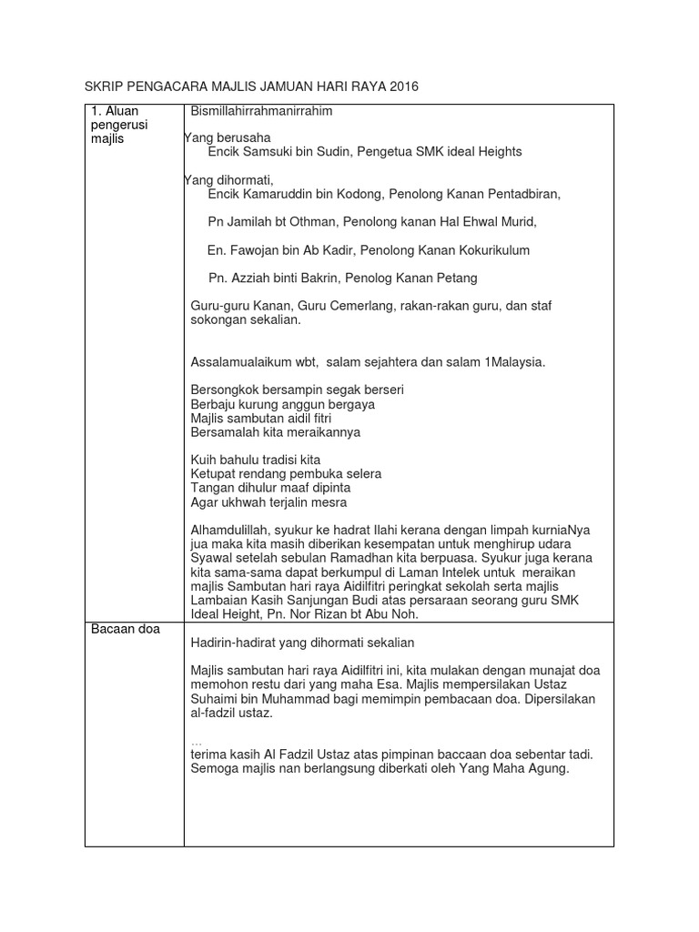 Skrip Pengacara Majlis Jamuan Hari Raya 2016 Pdf